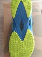 The grip pattern of the sole has been redesigned creating the RADIAL BLADE SOLE. By finely arranging a windmill shape that combines areas with large and small indentations, the weight of the shoe is dispersed, and the grip is improved by approximately 3%*. Resulting in a grip that supports quick dashes and sudden stops.